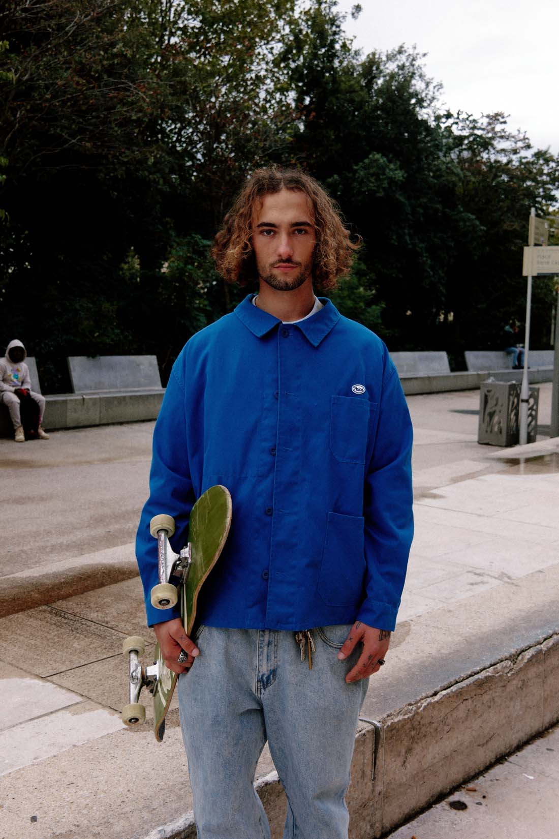 WORK JACKET 당구대에서 시작된 여정, 업사이클 자켓, 빌리 워크 자켓 * 제품의 색상은 사용자의 모니터 해상도에 따라 실제 색상과 다소 차이가 있을 수 있습니다 |