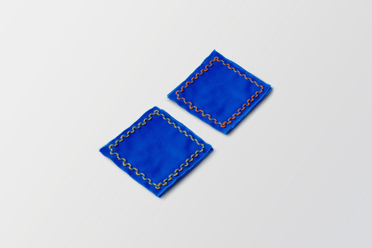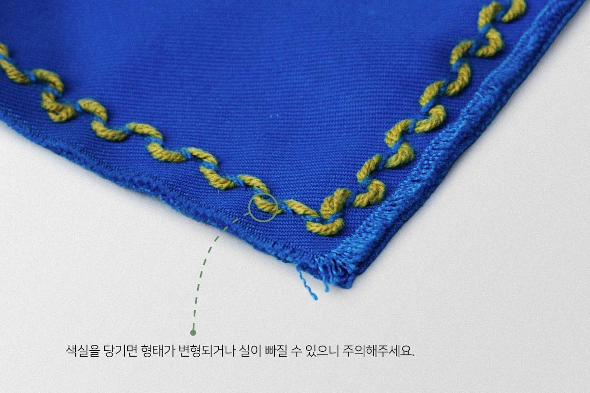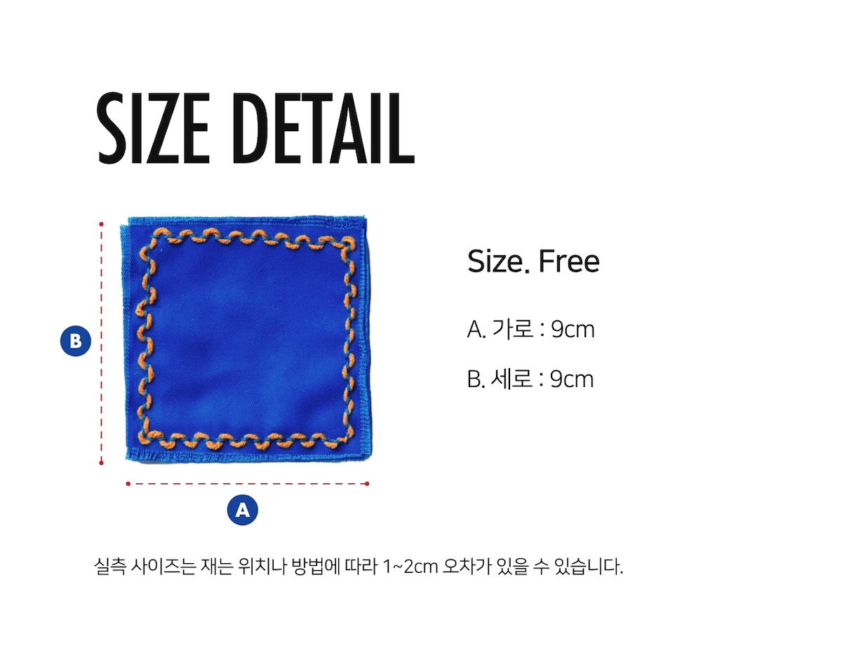 두 겹 구조의 견고한 마감 9cm x 9cm 크기의 원단 두장을 겹쳐 |