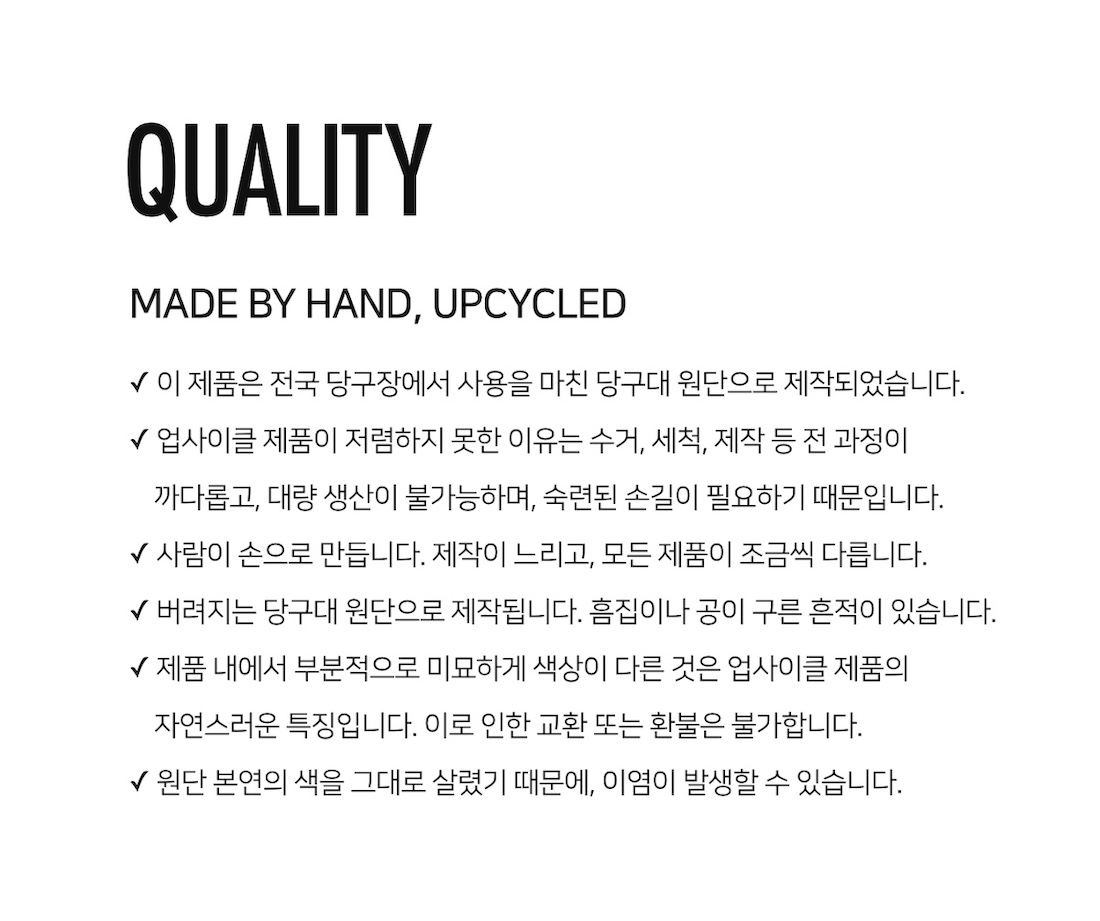 • 상세 이미지로는 업사이클 제품의 특성, 컨디션을 완벽하게 표현하지 못할 수 있습니다.