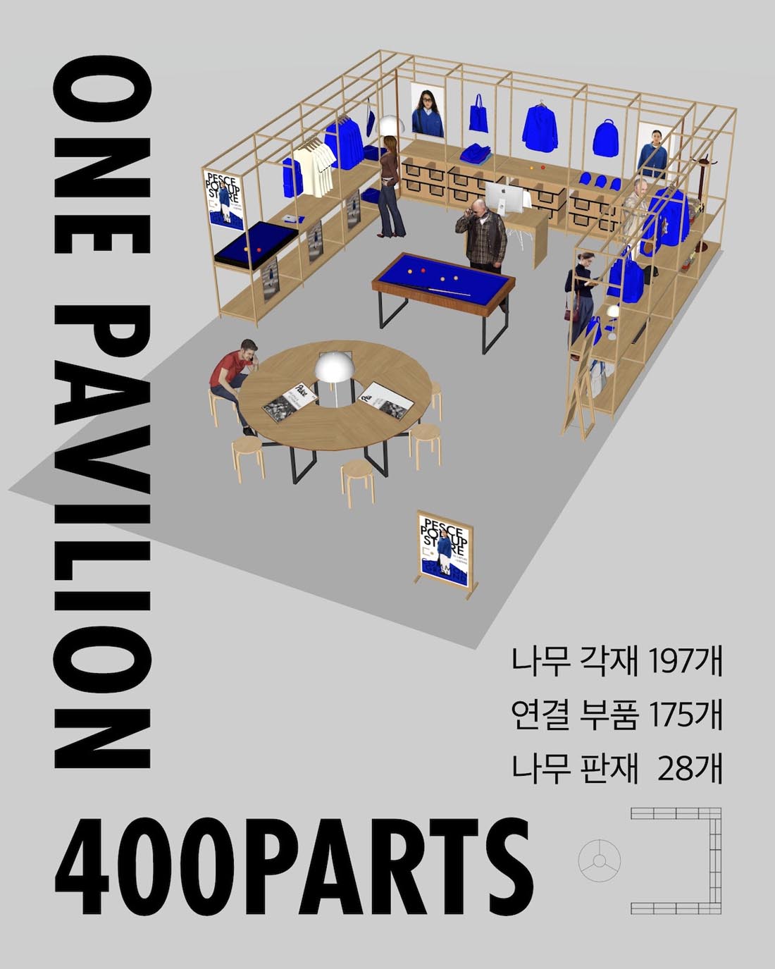 폐기물 없는 완전 조립식 팝업스토어.