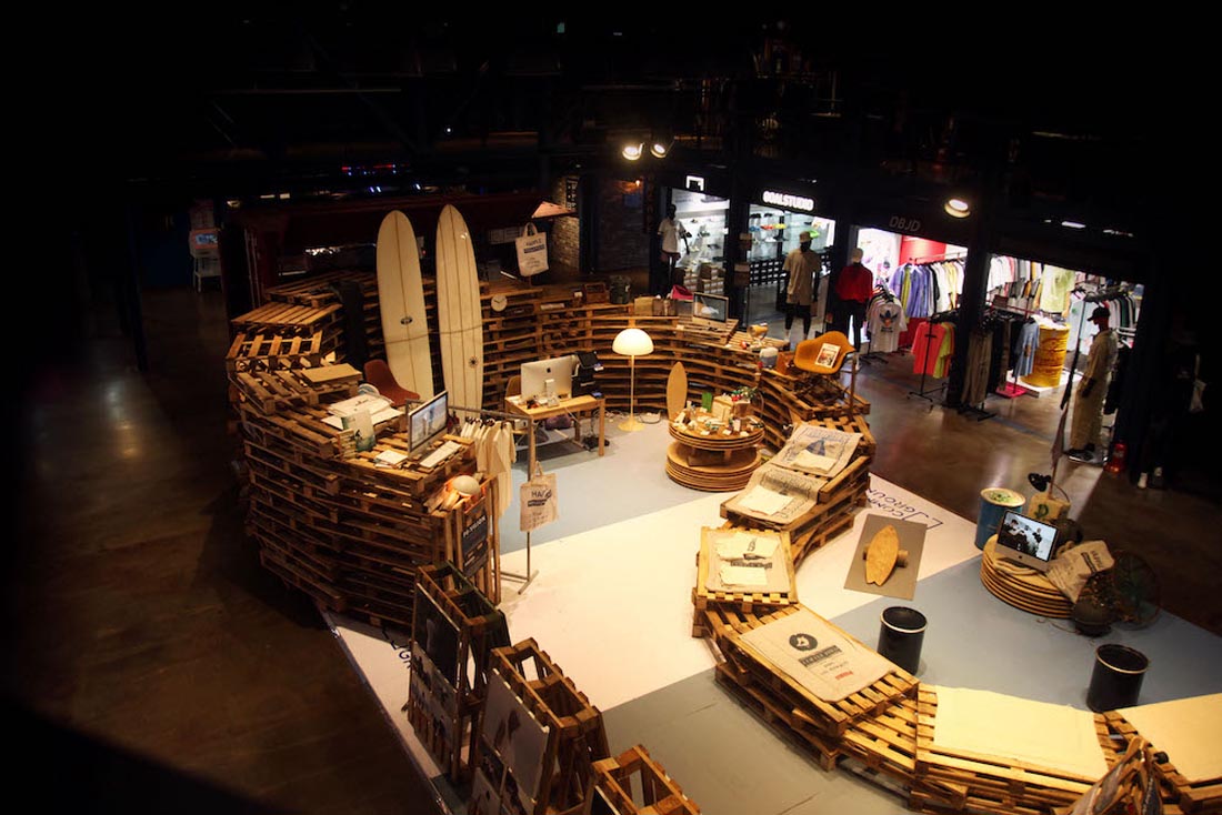 페셰의 업사이클 철학 공간으로 3년 전, 페셰의 첫 팝업스토어는 하나의 실험이었습니다. 건대 커먼그라운드의 중앙 팝업 존 6m x 9m 공간 안에서 '파빌리온(Pavilion)이라는 가설 건축물을 만들었습니다. 폐기물 없이 완성된 구조,파격적인 공간 구성은 많은 분들의 관심과 사랑으로 이어졌습니다. 그리고 2025년, 보다 성숙한 모습으로 페셰가 다시 커먼그라운드에 돌아왔습니다.